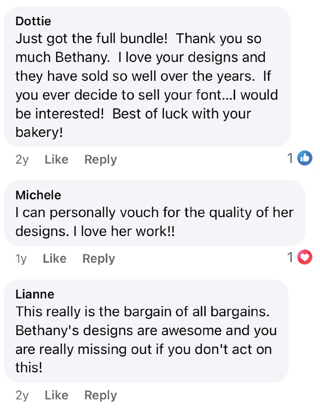 No fluff, just love from people who’ve used Bethany's designs and had to share.